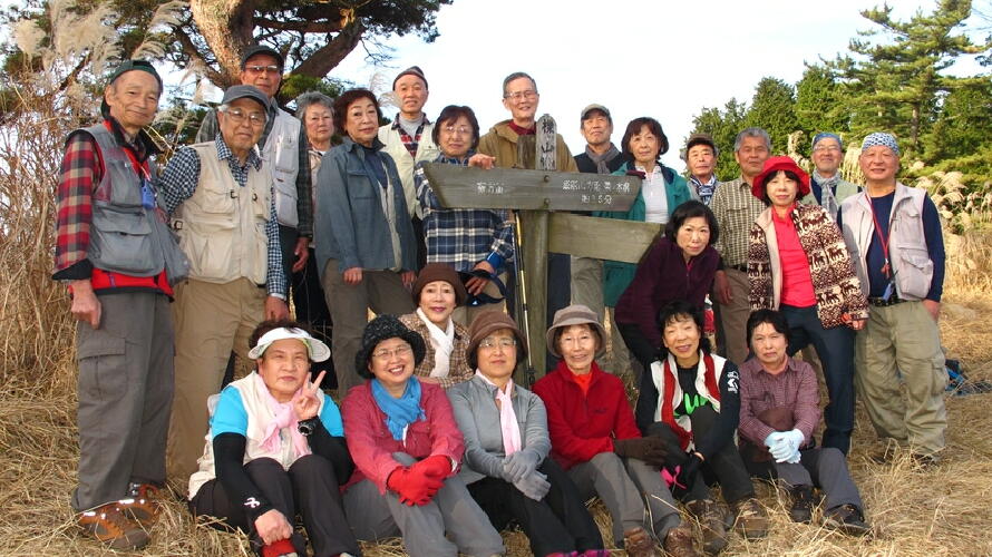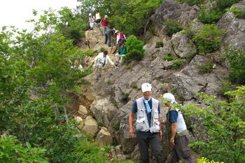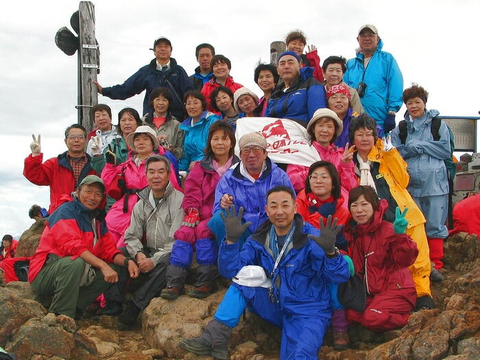 摺山(1995m)に登り着いて一服、集合写真を撮りました。ここから左へ
