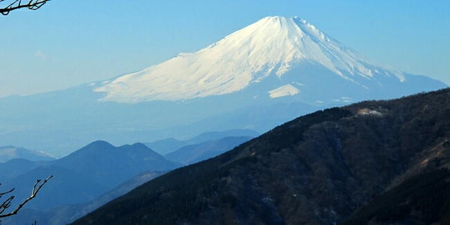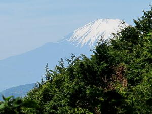 右折すると10:55柳沢ノ頭(1671m)、快晴の頂で一服です。かすんだ富士山が見えます。この
